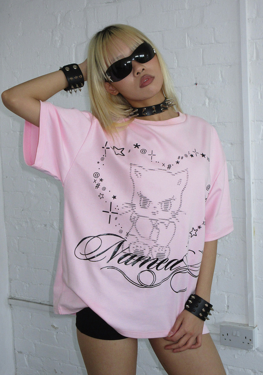 404 ERROR KITTY OVERSIZED TEE BABY PINK