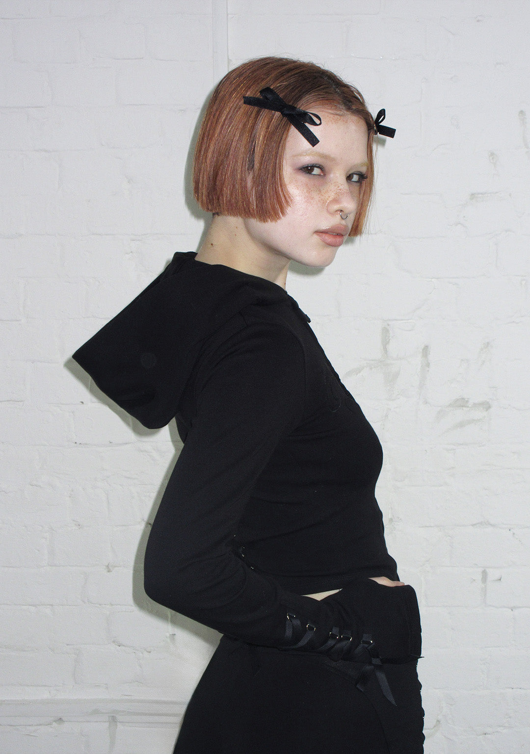 ★ Black ribbon lace corset feature on the sleeves and back