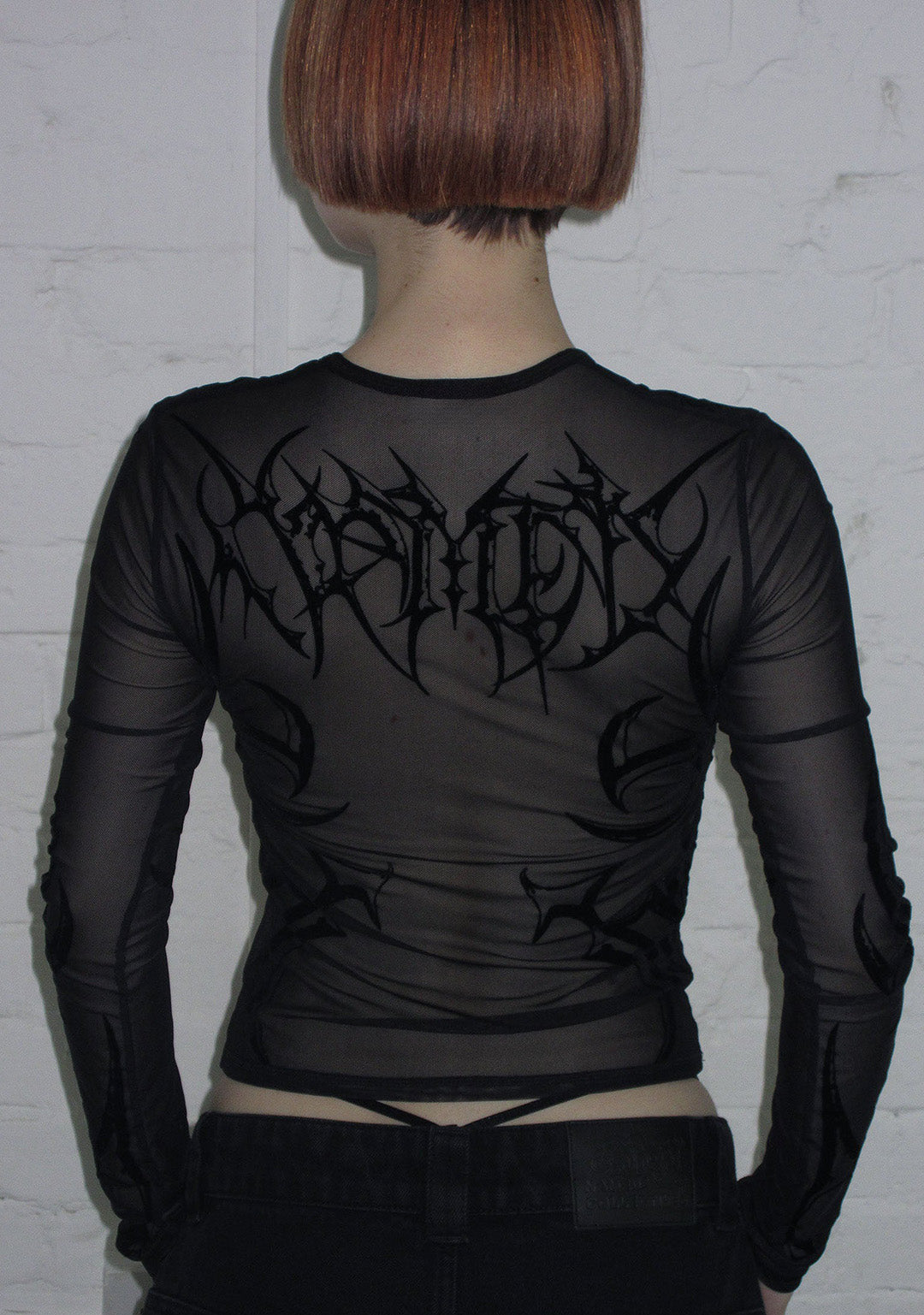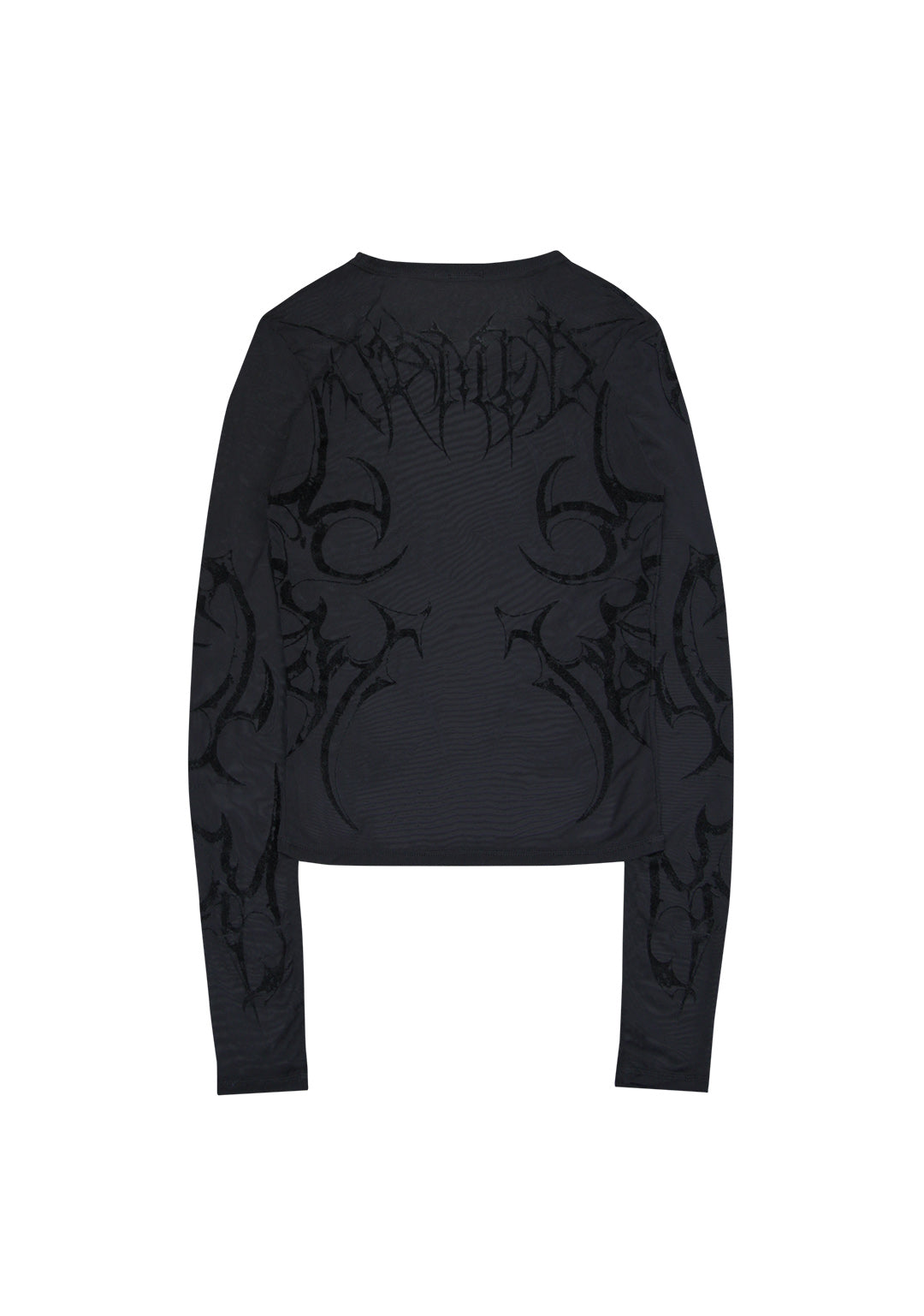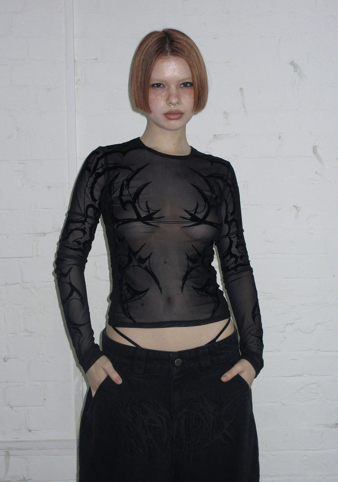 CRASH SHEER MESH LONG SLEEVE TOP BLACK