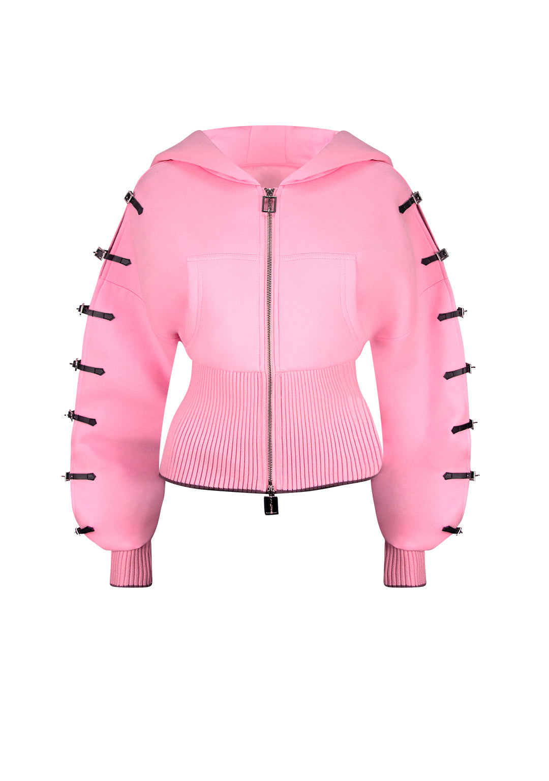 CRUSH BUCKLE FITTED WAIST ZIP HOODIE BABY PINK