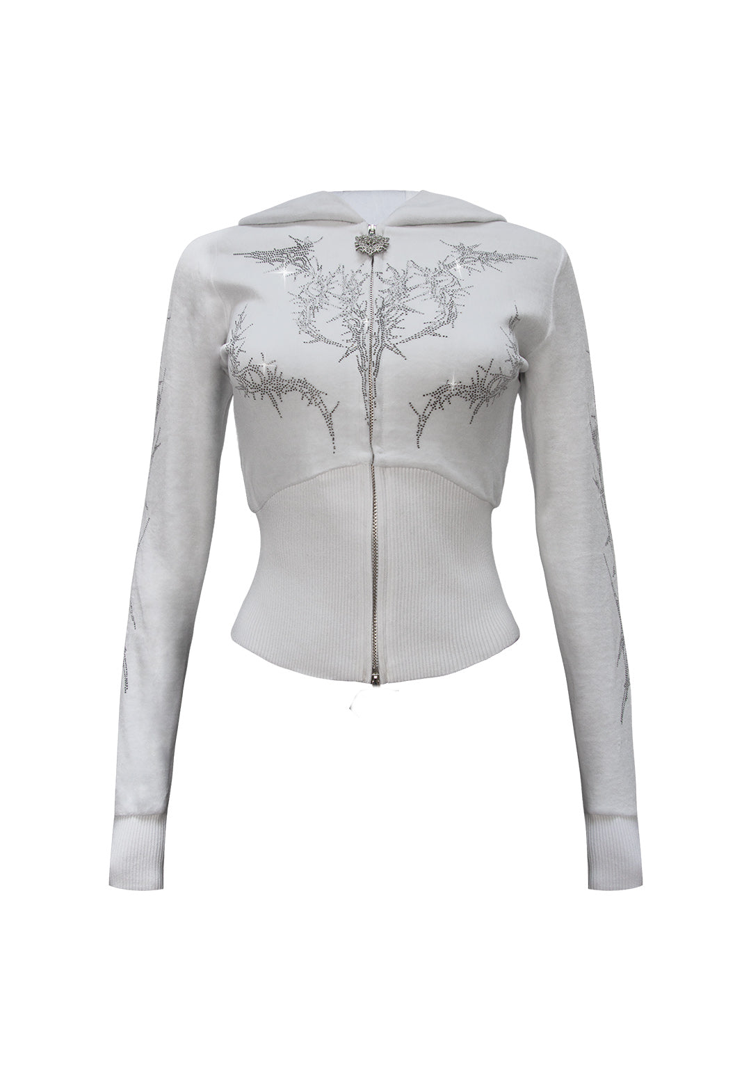 CURSE RHINESTONE VELOUR ZIP HOODIE SALT