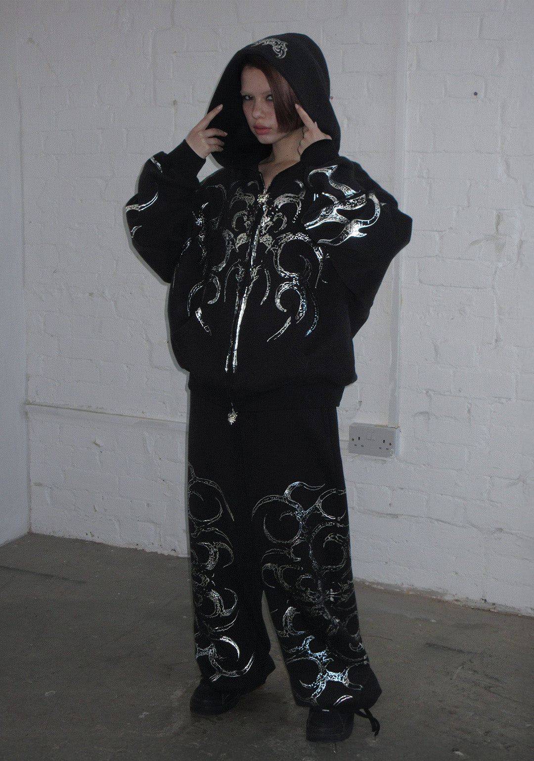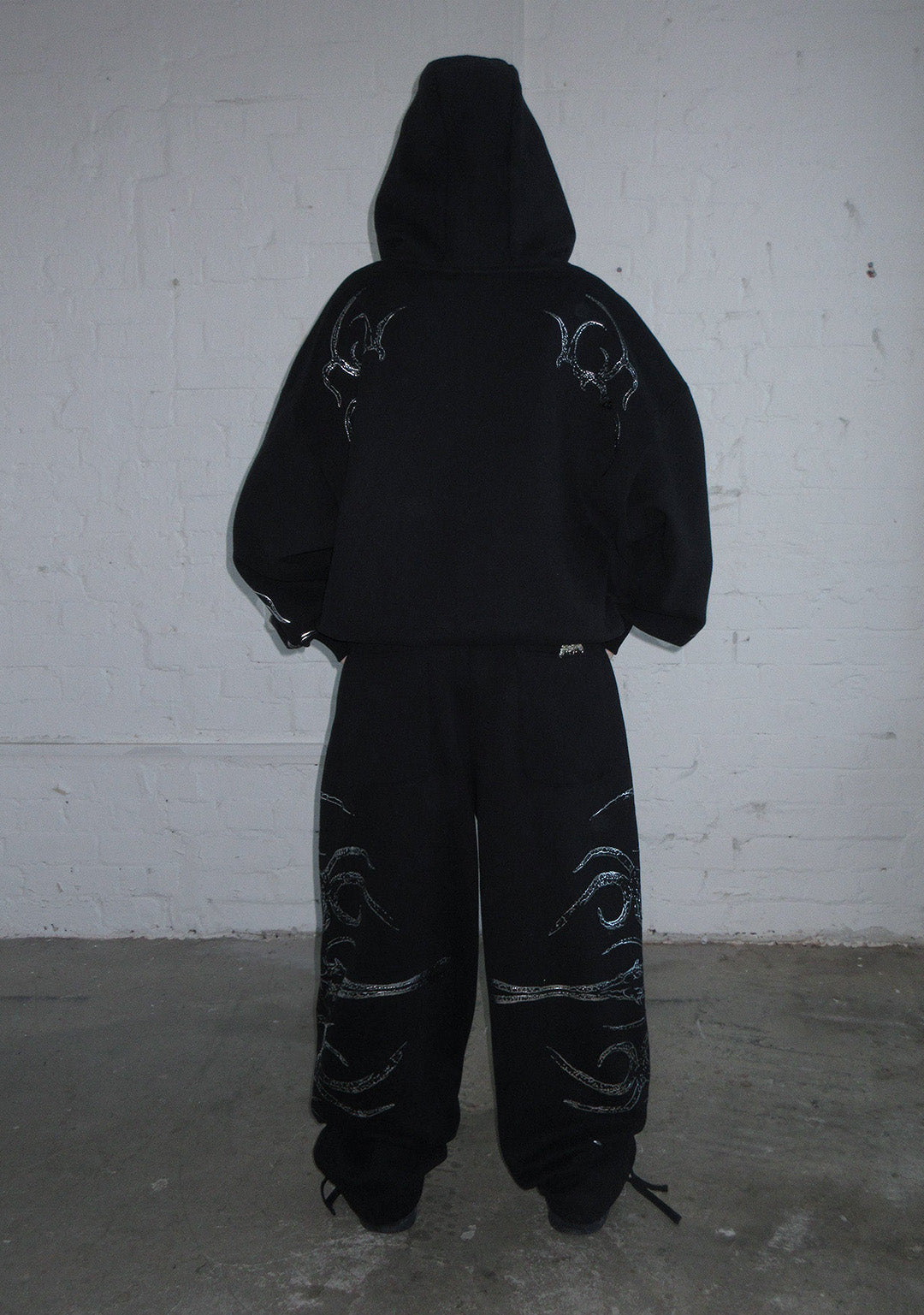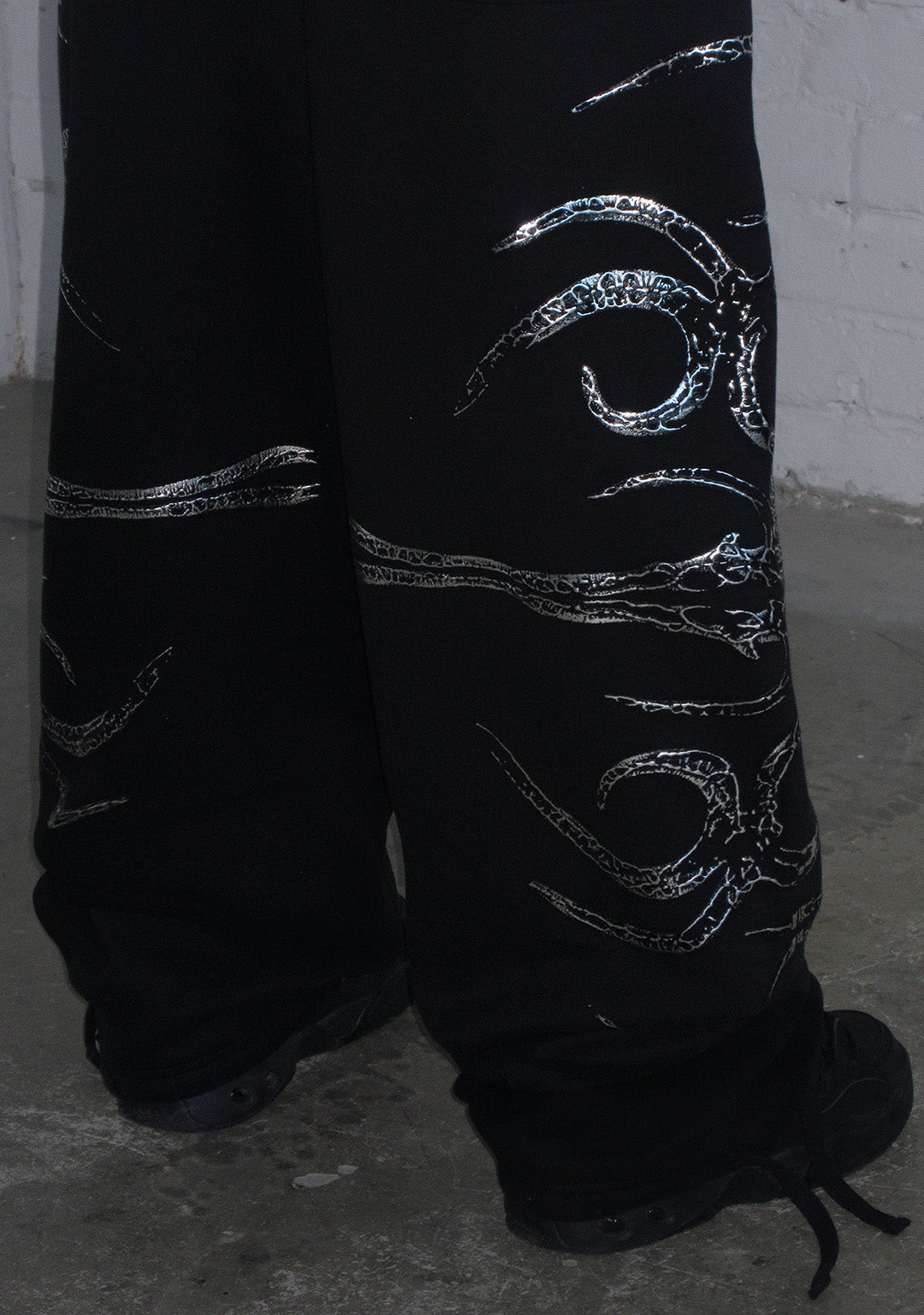 EUPHORIA DISTRESSED PRINT CHROME OVERSIZED SWEATPANTS BLACK