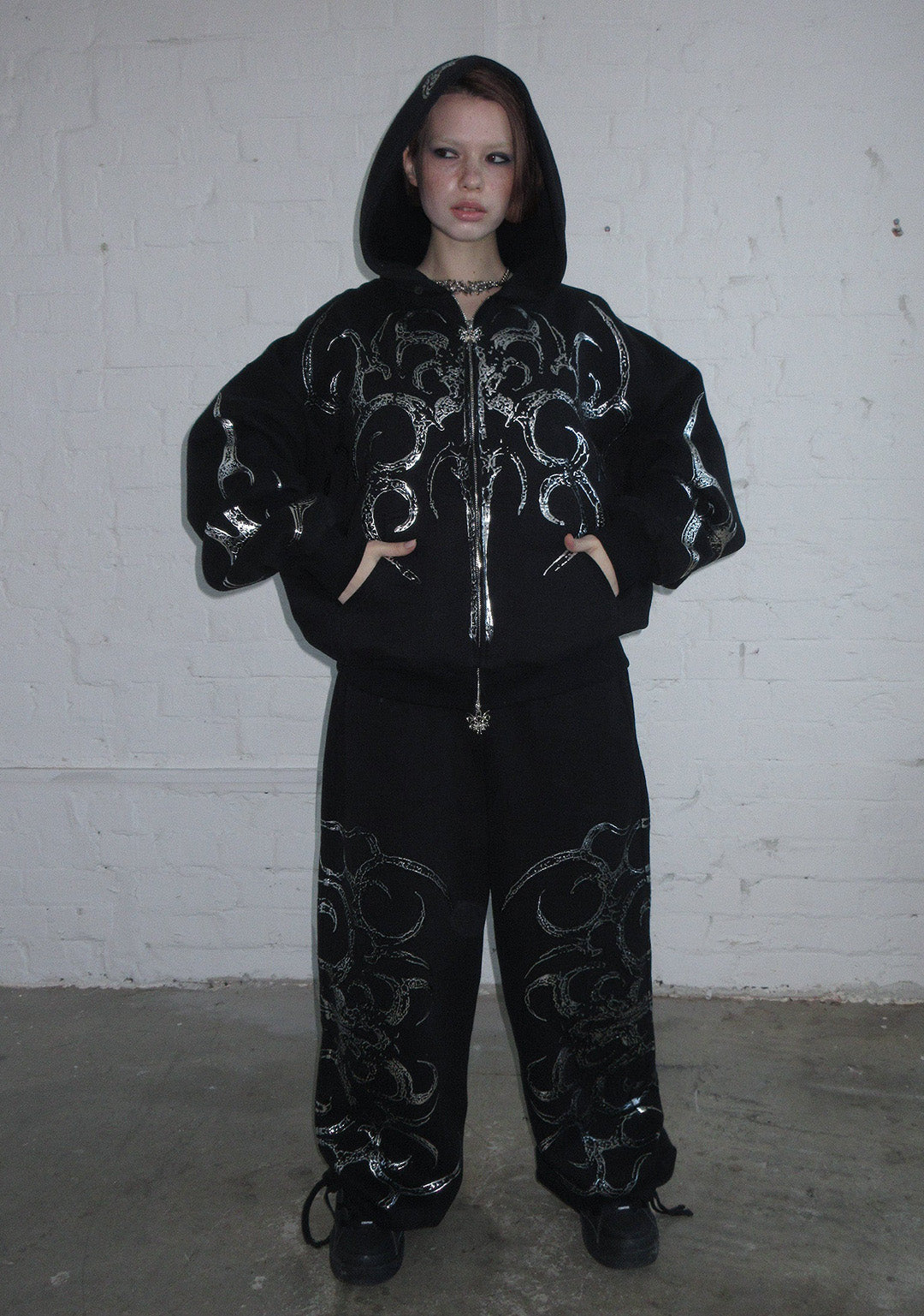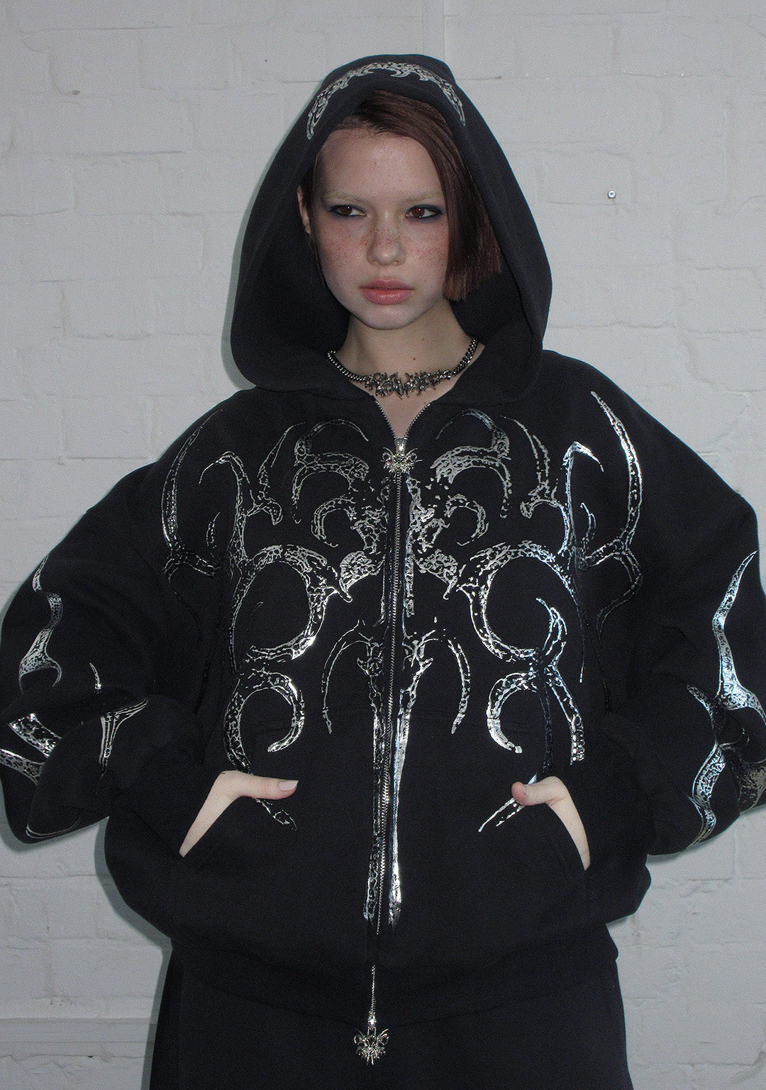 EUPHORIA DISTRESSED PRINT CHROME ZIP HOODIE BLACK