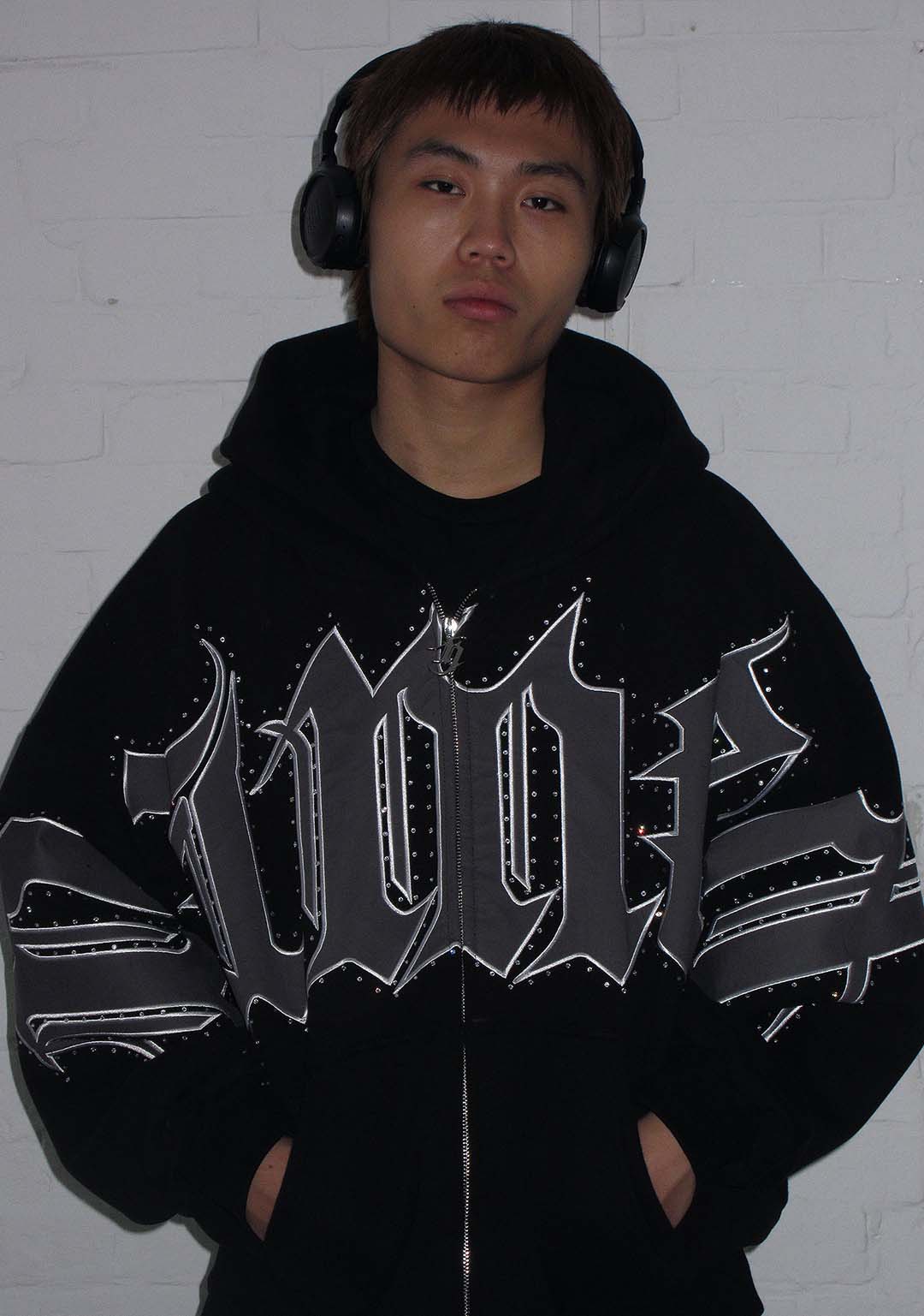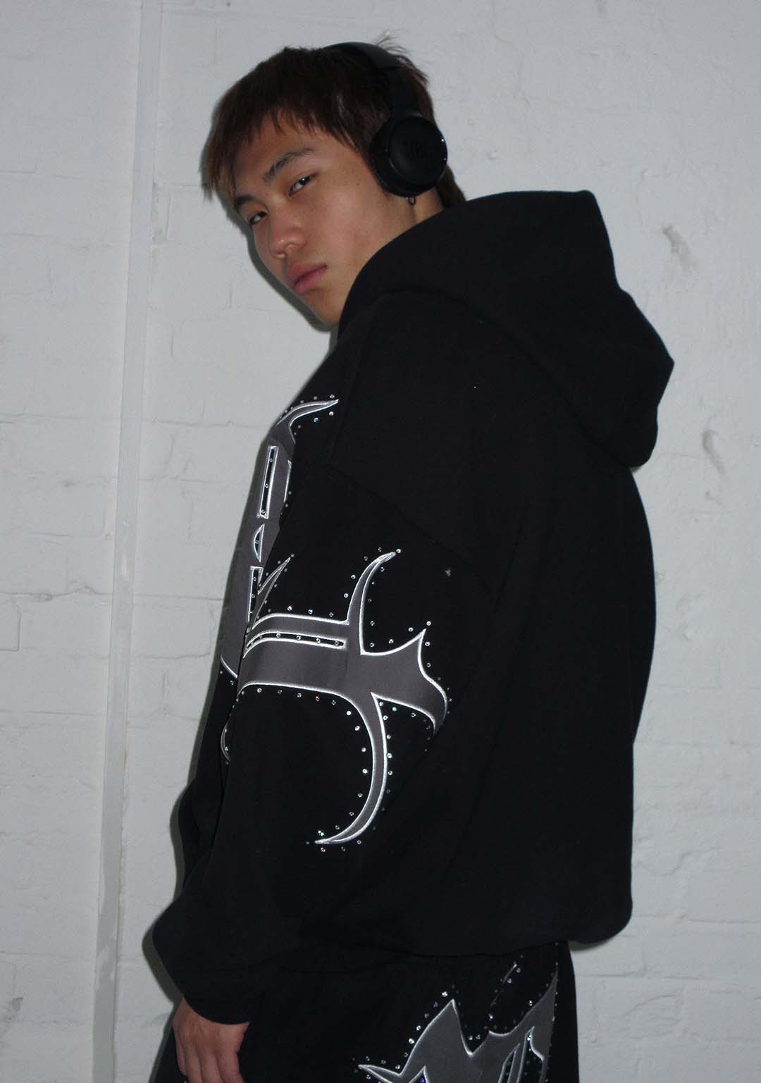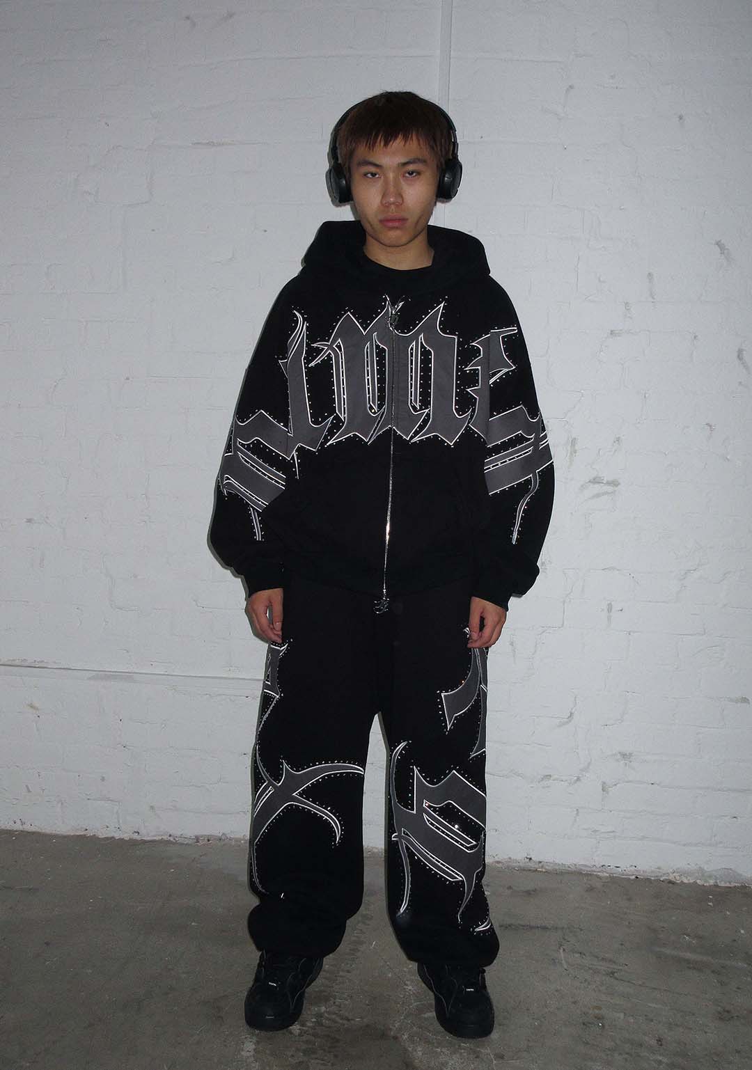 MONSTER RHINESTONE SWEATPANTS BLACK