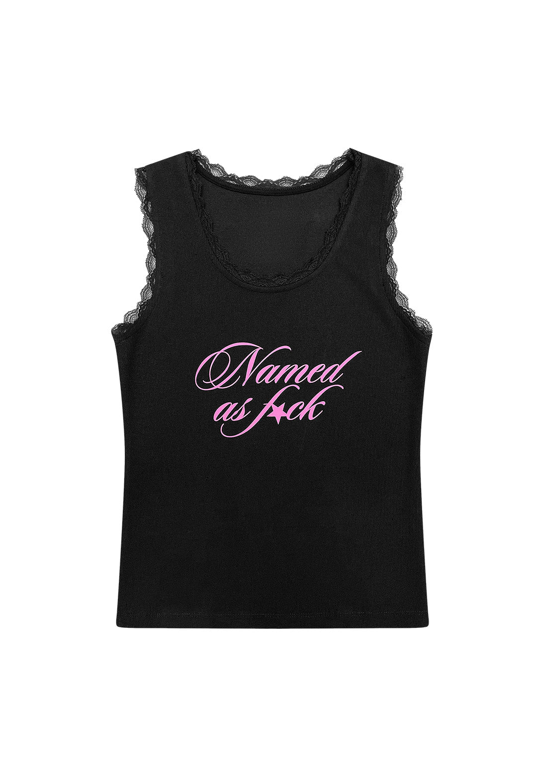 NAMED AS FUCK' LACE RIBBED TANK BLACK