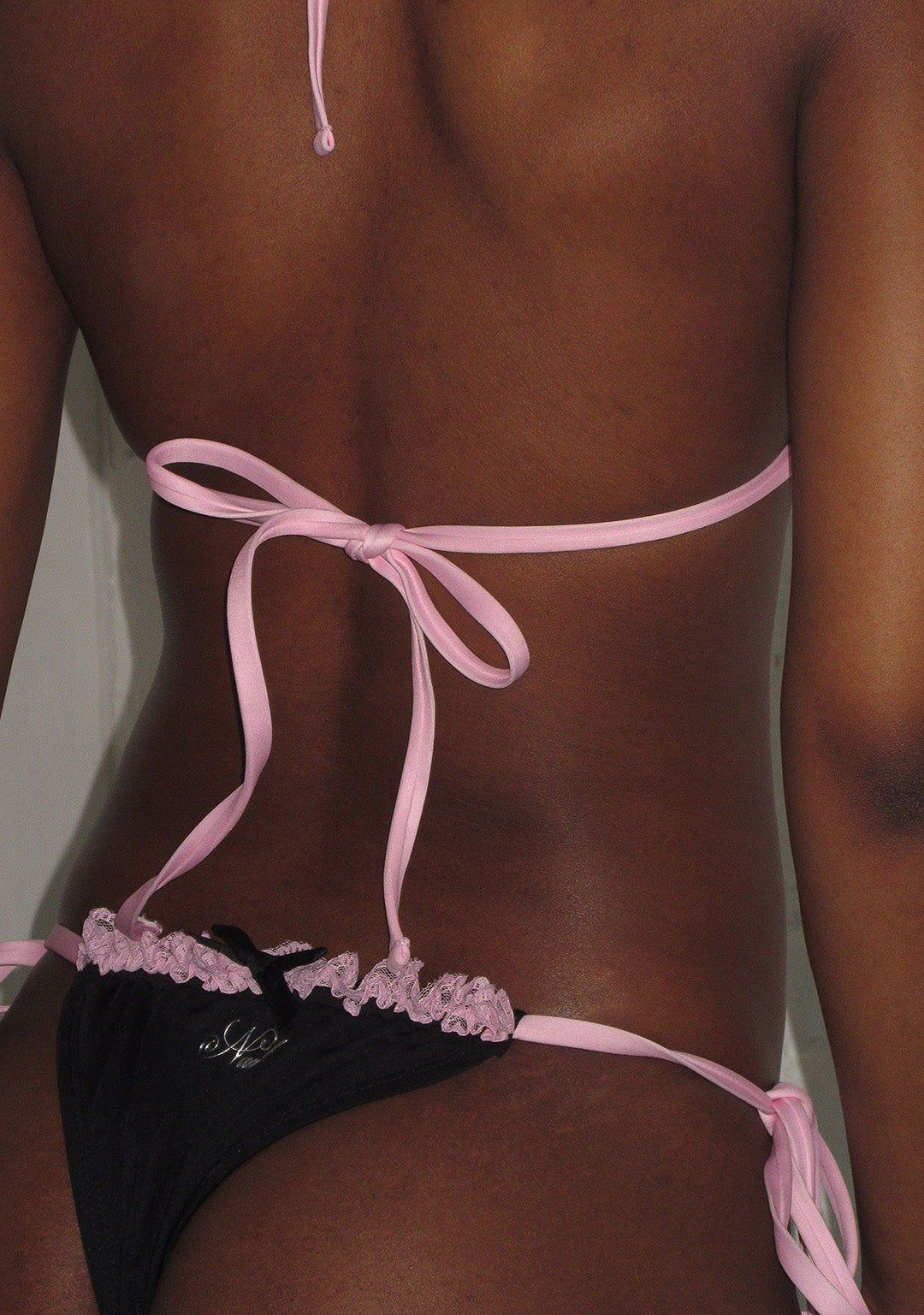 PRINC355 LACE RUFFLE BIKINI BOTTOMS BLACK