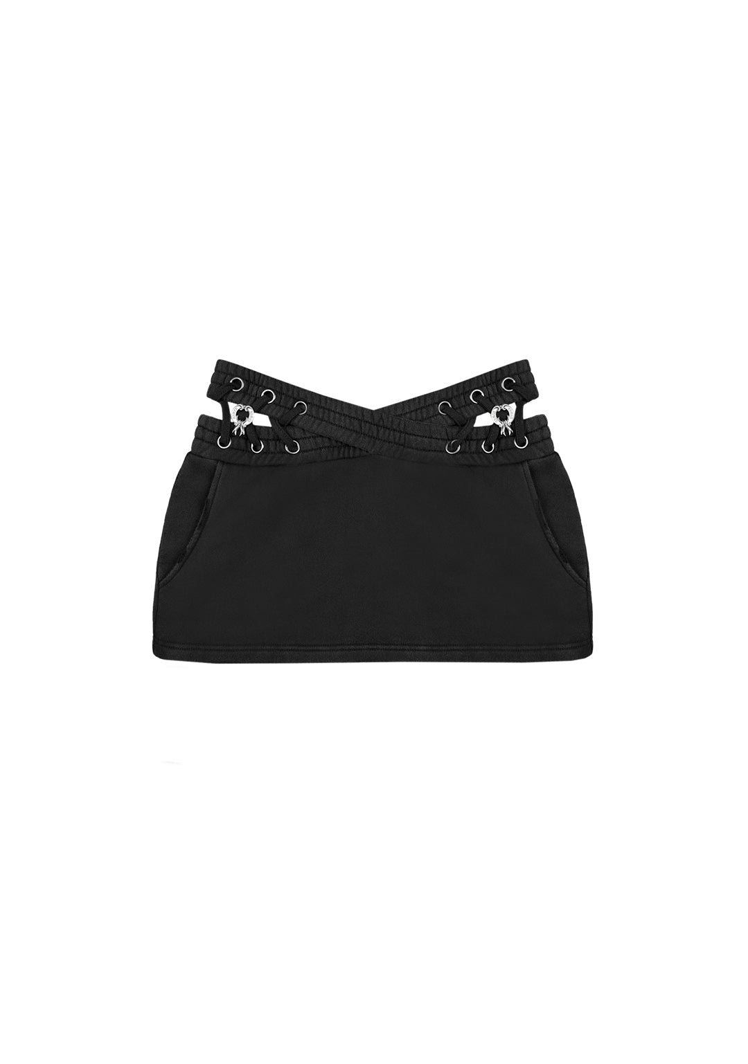 VENDETTA LACE UP MICRO SKIRT BLACK VINTAGE WASH