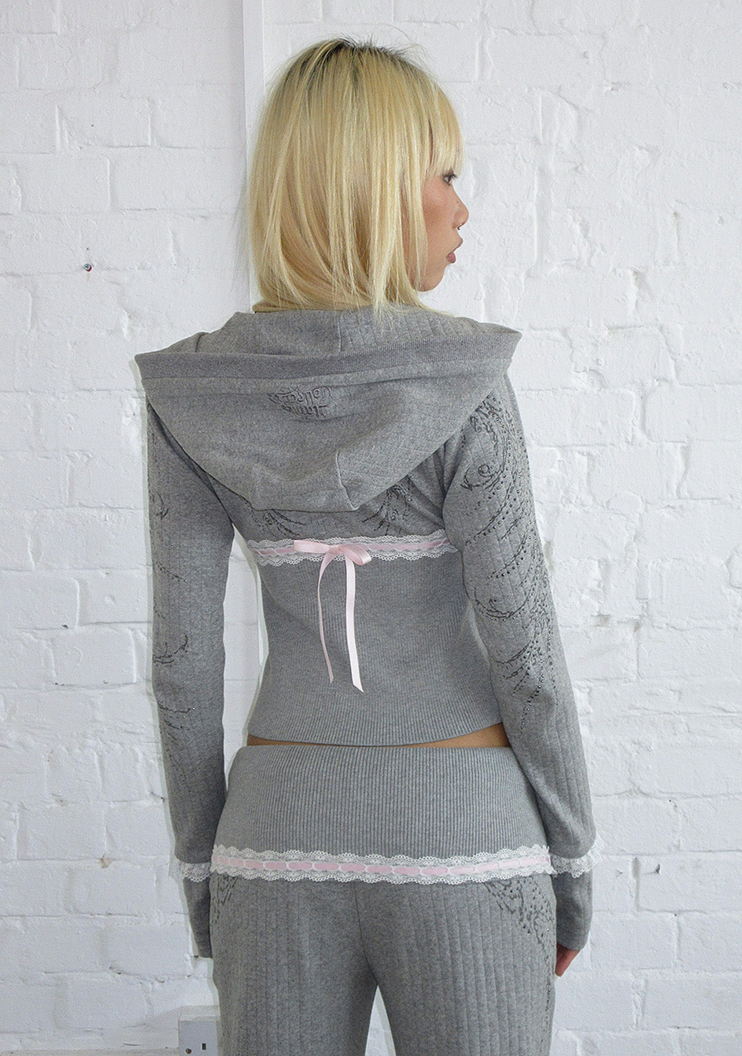 ★ Featuring baby pink satin ribbon and lace detailing, with raised logo embroidery